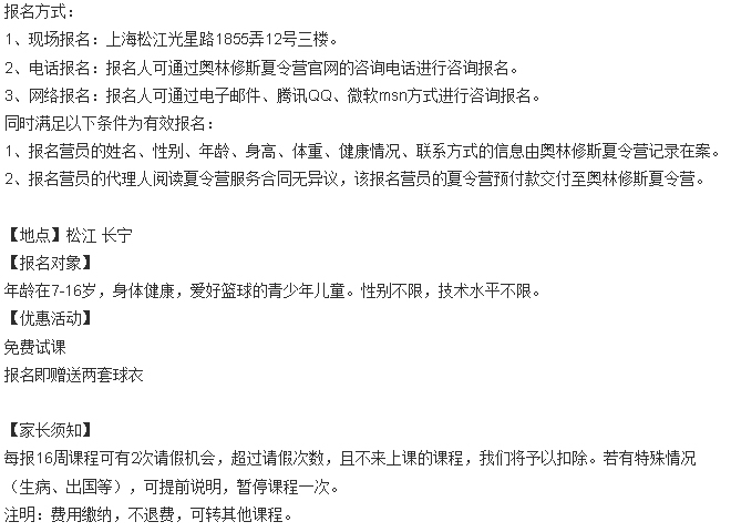 适合对象:年龄在7-16岁,身体健康,爱好篮球的青少年儿童。性别不限,技术水平不限。